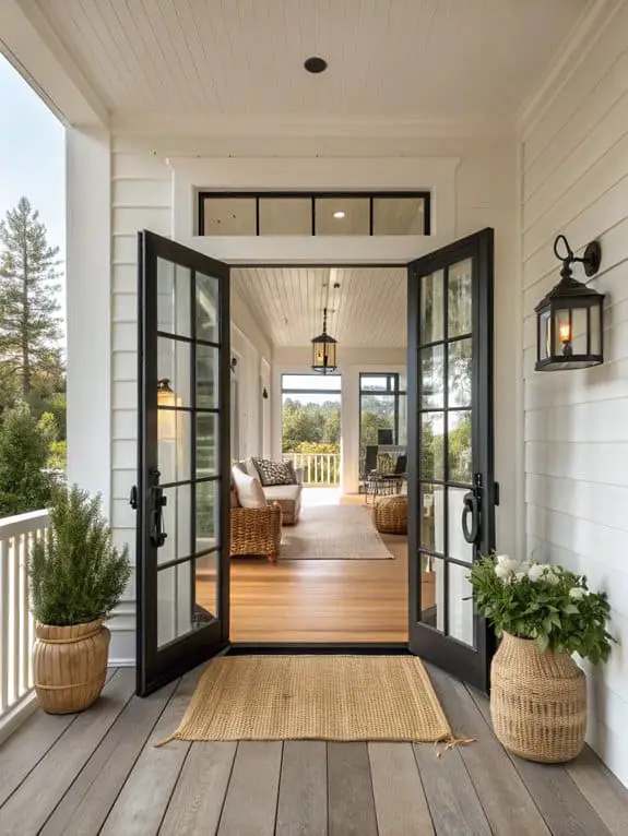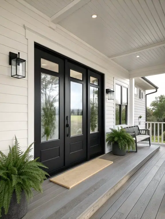 Black doors stand out against brick, wood, or painted siding, and make your porch feel intentionally decorated.