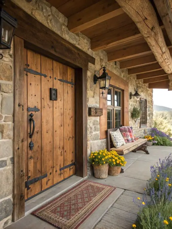 Maybe you’d rather trade sunny panes for something with a little more heart and history. A rustic wood back porch door instantly makes your space feel warmer and more grounded. Weathered planks or reclaimed timber add that tucked-away charm you love.