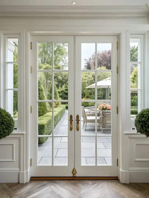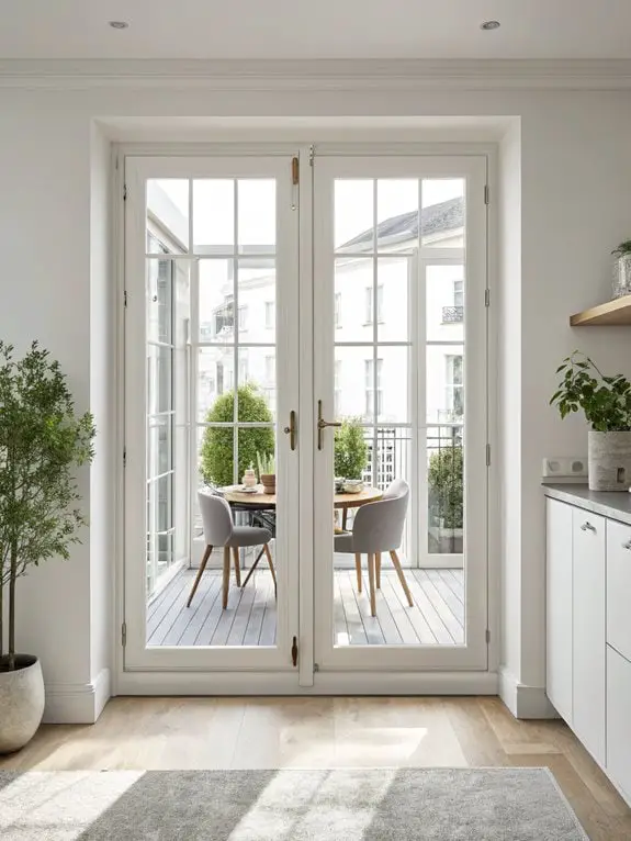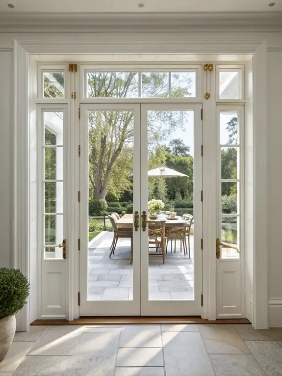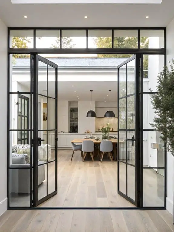 Sunlight floods your dining space when you pair French doors with a garden view, instantly making every meal feel special.