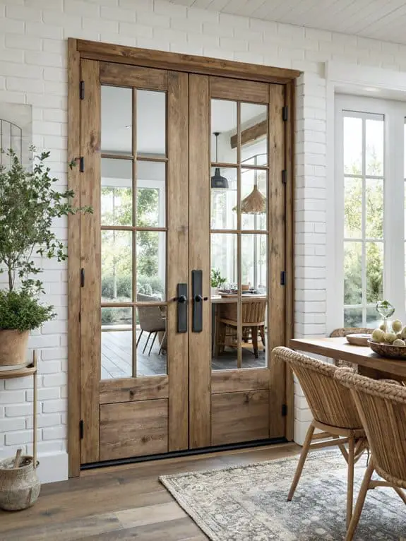 A rustic wood frame instantly brings warmth and texture to your dining room, pairing beautifully with French doors.